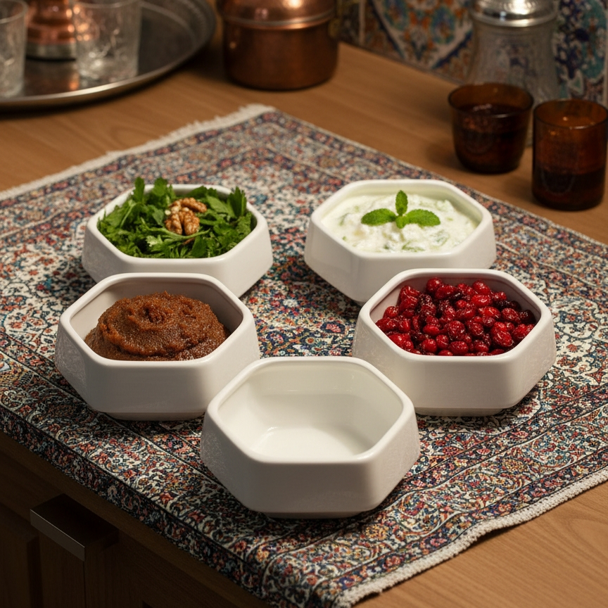 پیاله مدل سرامیکی طرح ۶ ضلعی مجموعه ۴ عددی